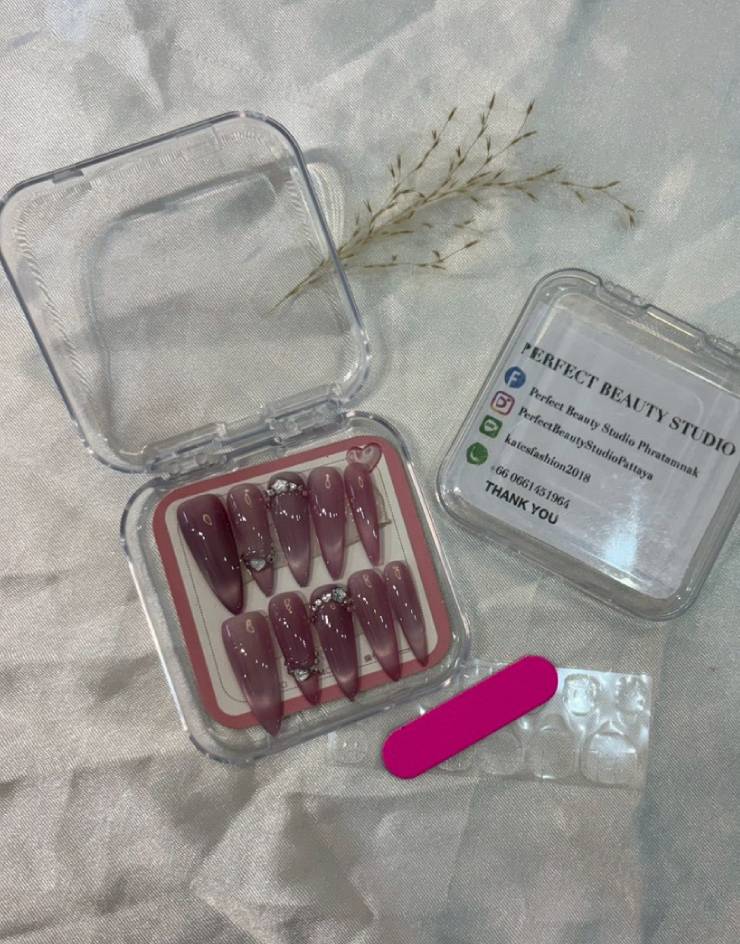 If you are looking for premium Rose Quartz Cat Eye Press-On Nails, our 014 artisan set from Perfect Beauty Studio is a handcrafted masterpiece. We have combined a deep, velvet mauve cat-eye base with a mesmerizing magnetic shift that mimics the natural depth of precious rose quartz. The look is crowned with our signature 3D Crystal Heart charms, hand-placed to catch the light and add a sophisticated, textured sparkle to every movement.