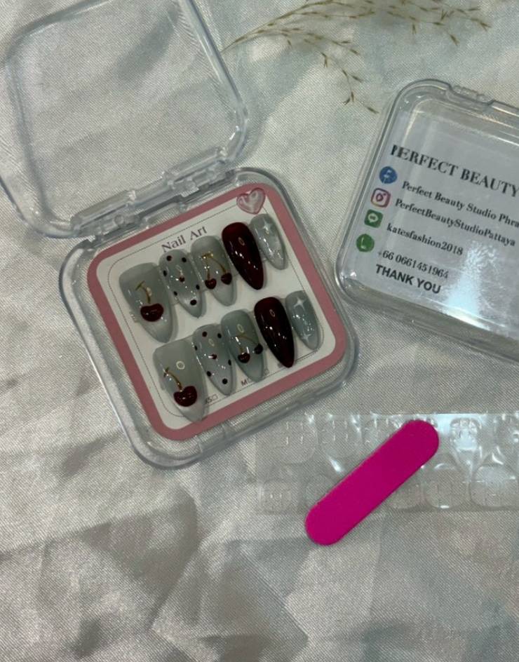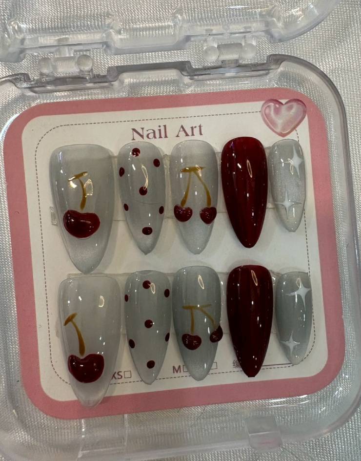These Translucent Cherry Press-On Nails provide a professional salon finish in under 10 minutes. Designed for maximum durability and a stunning high-gloss shine, these nails are perfect for those who want a custom, artistic look that looks like a high-end gel extension.