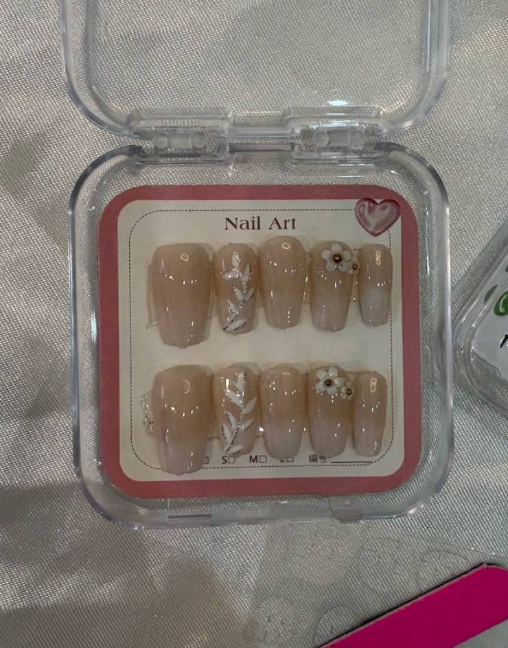 If you are looking for premium White Floral Press-On Nails, our Bridal Bloom artisan set from Perfect Beauty Studio is a handcrafted masterpiece. We have used a soft nude and milky-white gradient base to create a clean, sophisticated canvas. The design is elevated by intricate, hand-sculpted 3D white blossoms and delicate gold-leaf accents that catch the light with every movement.